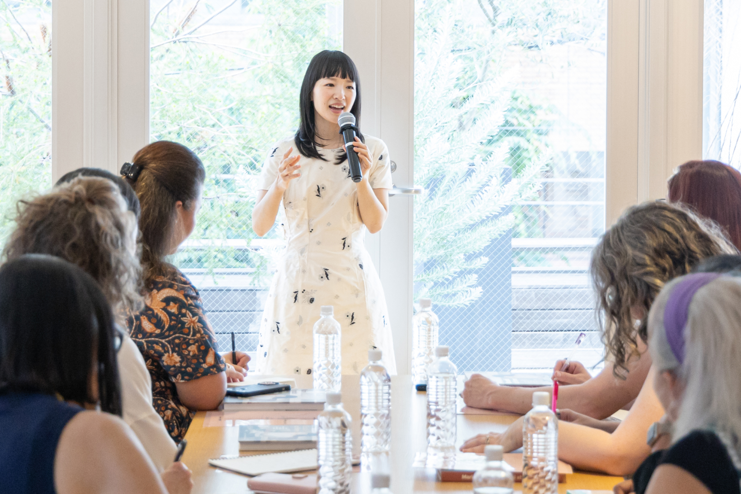 After getting certified, every KonMari Method Consultant can join our Slack community, where Consultants regularly pose questions, share discoveries and help each other reason out new scenarios or unexpected situations. Our KonMari Consultant Program team also offers multiple live workshops throughout the year on topics like building a successful business, personal branding, and more. Consultants also often plan meet-ups in their areas and even abroad — last month, many of our Consultants convened in Japan to meet Marie and explore the culture and philosophy that led her to develop the KonMari Method.