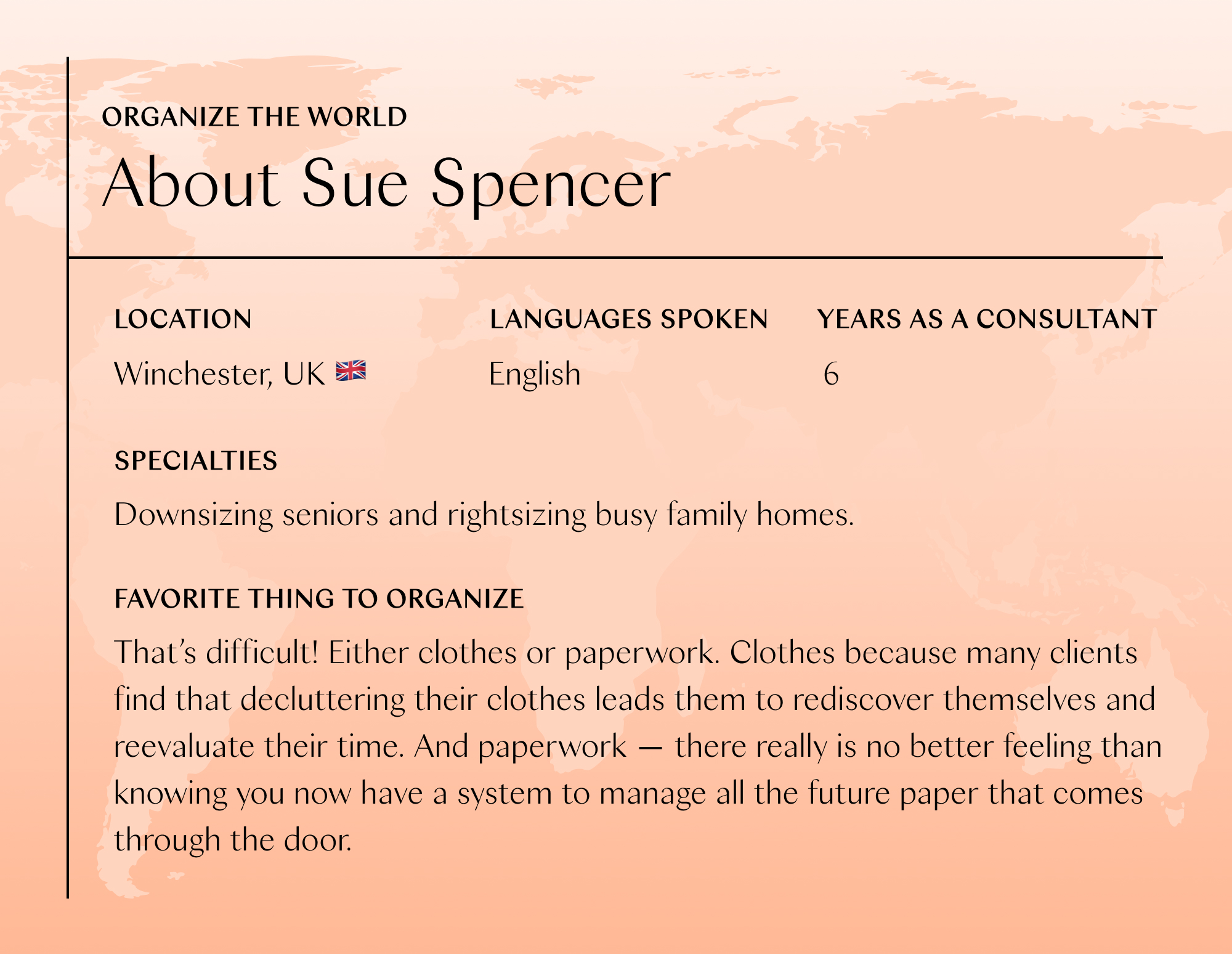 Today’s guest, KonMari Consultant Sue Spencer (A Life More Organised), uses a thoughtful term for one of her specialties: rightsizing. A cousin to “downsizing,” Sue’s clients are often seniors preparing to move into smaller homes, but she also works with recent college graduates, parents of teenagers and new empty nesters. We asked her to explain why she recommends rightsizing multiple times during your life — and how to tackle it.