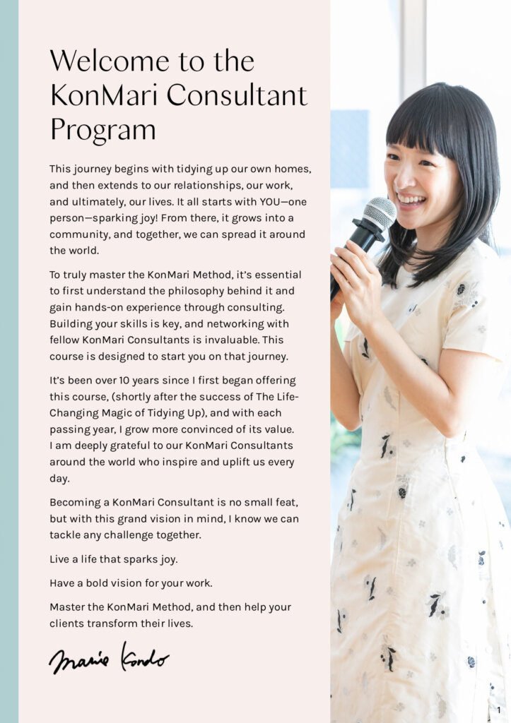 - Ability to conduct sessions using the KonMari Method as soon as you finish the course, as a Consultant-in-Training