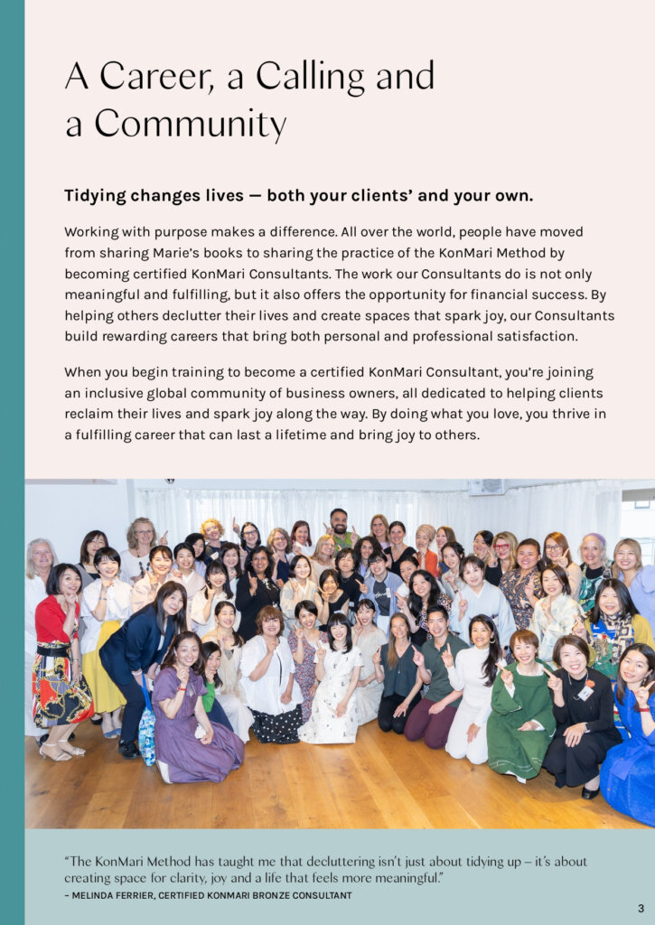 - Quarterly “CIT Salons” – live, interactive sessions exclusively for Consultants-in- Training and hosted by a certified KonMari